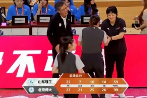 末节决战,北京师大上来就拉开30分以上领先,马芮莹三分止血但李星诺三分迅速回应。随后北京师大继续发力,李星诺、曹博怡、邵冰冰和张书璇相继外线扔进5记三分,分差直接来到40分以上,最终北京师大99-59轻取山东理工,晋级全国四强。